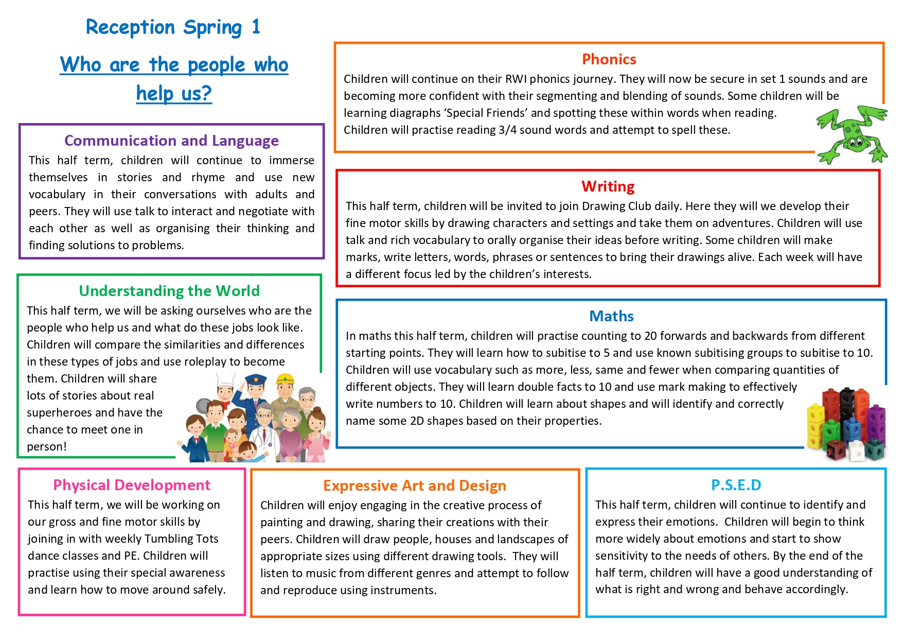 Initially, the Reception children will learn the first set of sounds (including the alphabet and the phonemes: sh, ch, th, ng and nk.) and how to form these letters correctly. Further practise will be sent home weekly to reinforce and ensure your child retains this skill. This will prepare your child for reading and writing and is the first step for them in becoming a reader and writer.